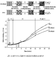 圖4為不同摻量粉煤灰對(duì)電阻率發(fā)展曲線的影響,從圖6中可以看到兩個(gè)明顯的結(jié)果:一是相同點(diǎn),不同電阻率曲線有相同的發(fā)展趨勢(shì),電阻率降低到低點(diǎn),然后隨時(shí)間逐漸增加,電阻率發(fā)展曲線遵循著不同的水化階段,這一特點(diǎn)與水泥凈漿的水化過(guò)程相似。二是不同點(diǎn),通過(guò)比較6中的電阻率曲線,發(fā)現(xiàn)粉煤灰漿體的上升速度較慢,這主要是粉煤灰早期反應(yīng)速度較小的原因。