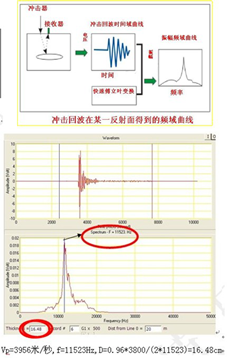 介紹:沖擊回波法使用一個(gè)傳感器測(cè)試記錄,沖擊在臨近傳感器表面產(chǎn)生的回波。對(duì)各種反射回波的數(shù)據(jù)進(jìn)行快速傅立葉變換(FFT)。在***波譜上顯示的每個(gè)特定頻率都對(duì)應(yīng)著一個(gè)特定的厚度和深度 |