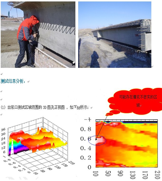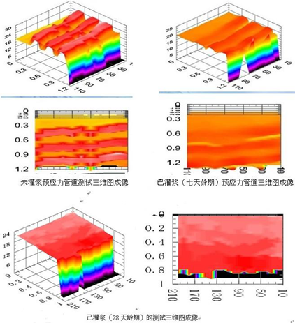 2、掃描式?jīng)_擊回波方法可以測(cè)試預(yù)應(yīng)力管道壓漿飽滿度情況,并能通過(guò)三維圖只管顯示缺陷所在的位置。